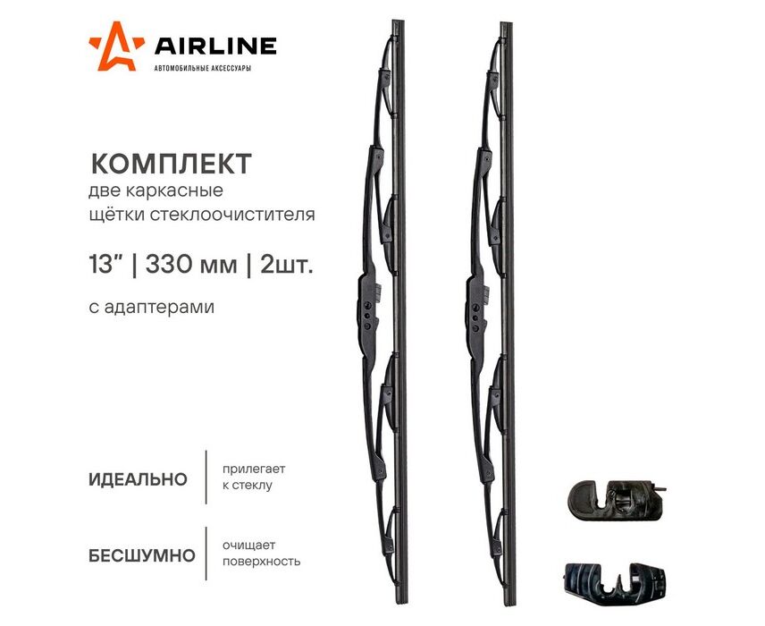 Щетки стеклоочистителя каркасные 330/330мм (13") 2 шт. 2 адаптера