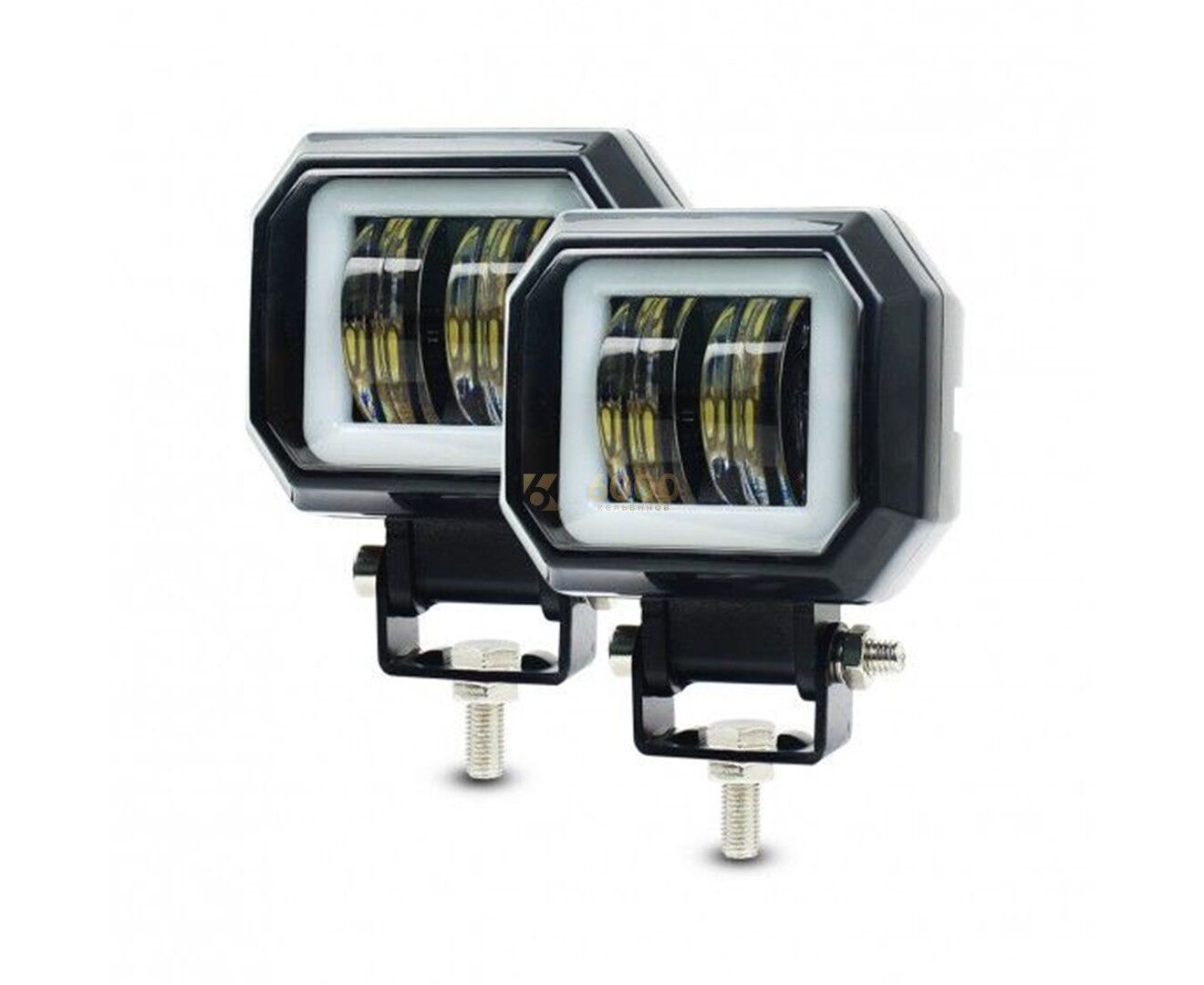 Комплект квадратных светодиодных фар по 20 Ватт 4 led Cree 10-80 Вольт ДХО c СТГ на мото и авто