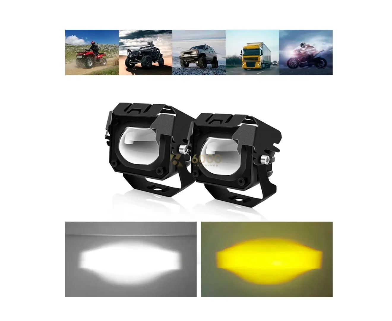 Комплект светодиодных мото фар по 15 Ватт FR167115 с СТГ белый/желтый свет