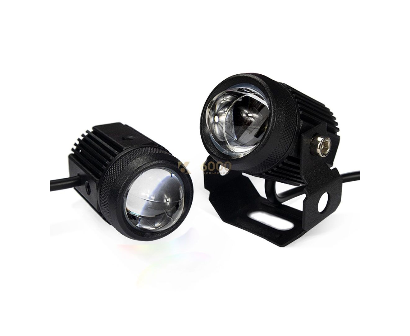 Светодиодные мото фары с СТГ 20 Ватт ПТФ белый/желтый свет (комплект)