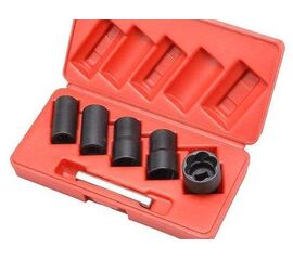 Набор винтовых головок-экстракторов Force 906U2 предназначен для откручивания поврежденных и слизанных гаек. Комплектация Force 906U2: Выколотка 1/2" экстракторы длиной 50 мм, 5 штук: 17, 19, 21, 23, 27 мм