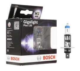 Вид лампы - Галоген Тип лампы - H1 Патрон - P14,5S Номинальная мощность (Вт) - 55 Номинальное напряжение (V) - 12 Улучшение - +120% Серия - Gigalight plus 120