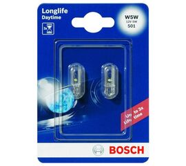 Вид лампы - Лампа накаливания Тип лампы - W5W Патрон - W2,1x9,5D Номинальная мощность (Вт) - 5 Номинальное напряжение (V) - 12 Улучшение - More Light +10% Серия - Long Life daytime