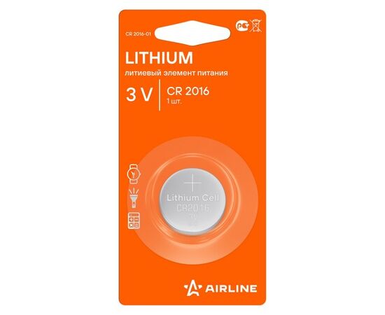 Батарейка CR2016 3V для брелоков сигнализаций литиевая 1 шт. (CR2016-01)