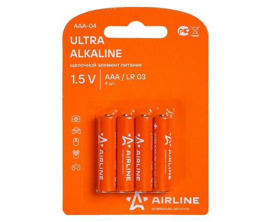 Батарейки, изготовленные из щелочных материалов, предназначены для обеспечения питанием разнообразных приборов электронного действия. AIRLINE предлагает комплект из четырех щелочных батареек модели LR03/AAA. Следование инструкции по эксплуатации изделия является гарантией предотвращения несчастных случаев.