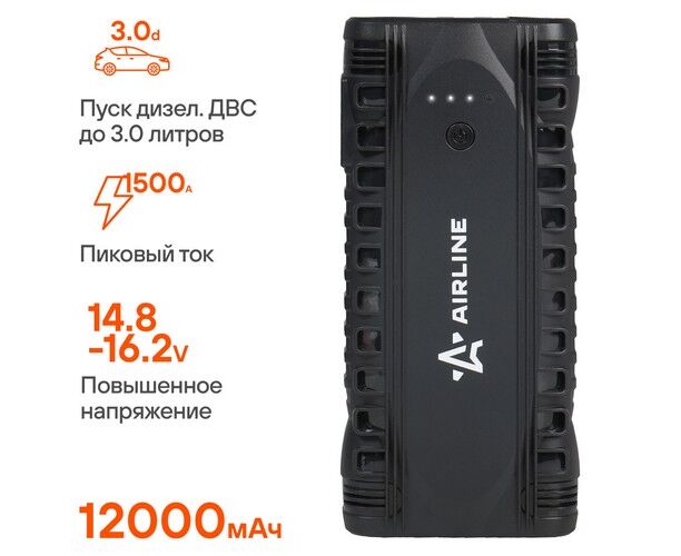 Аккумулятор пусковой 12000мАч (44.4Втч), 750А, 14.8V, умные провода, пуск ДВС 3.0d, кейс (AEAB006)