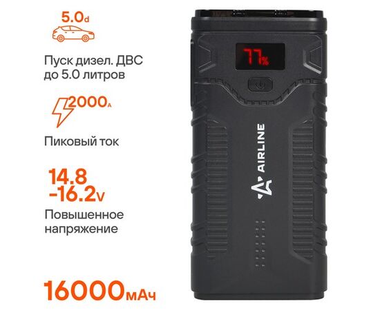 Аккумулятор пусковой 16000мАч (59.2Втч), 1000А, 14.8V, умные провода, пуск ДВС 5.0d, кейс (AEAB007)