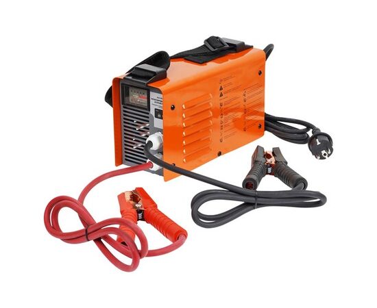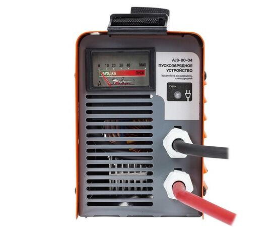 Конструкцией предусмотрены регулировка выходного (сварочного, пускового и зарядного) тока и встроенный цифровой амперметр. Преимуществами данного аппарата является не только высококлассная техническая оснащенность, но и компактные размерные показатели устройства, благодаря которым изделие удобно перевозить и хранить в салоне автомобиля. Технические достоинства пускозарядного устройства – это простая в использовании система зажигания, а также вмонтированный амперметр, который позволяет производить регулировку подаваемого тока. Мощность в 80А является достаточной для эксплуатации устройства при запуске любых легковых автомобилей. AJS-80-04