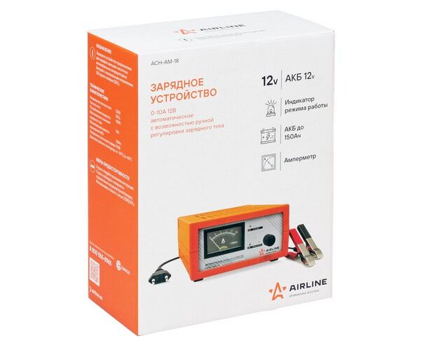 Зарядное устройство 0-10А 12В, амперметр, ручная регулировка зарядного тока, импульсное (ACH-AM-18)
