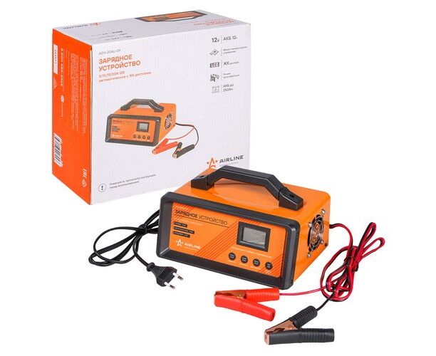 Назначение зарядных устройств AIRLINE - заряд автомобильных 12В свинцово-кислотных аккумуляторных батарей (далее АКБ) любого типа. Автоматические импульсные зарядные устройства надёжные, мощные и простые в управлении помощники автолюбителя. Модель ACH-20AU-09 полностью автоматическое цифровое импульсное зарядное устройство управляемое микропроцессором. Жидкокристаллический дисплей с подсветкой отображает режимы работы, напряжение на батарее, степень зарядки. Режим десульфатации поможет восстановить ёмкость АКБ и продлить срок её службы. Максимальная сила тока 20 ампер и возможность выбора типа АКБ (Гелевая, Кислотная, Кальциевая) позволит зарядить любую современную 12В АКБ быстро и без лишних забот.