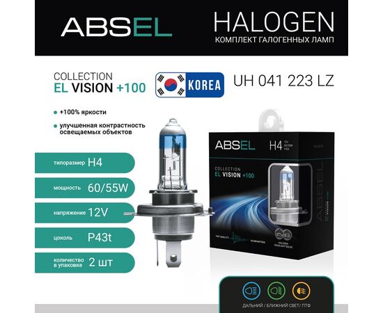 Лампа галогенная H4 P43t 12V 60/55W EL VISION +100 (комплект 2шт)