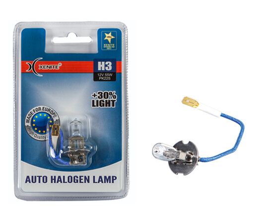 Лампа галогеновая головного света H3 PK22s 3200K Яркость +30% 12V 55W Блистер 1шт