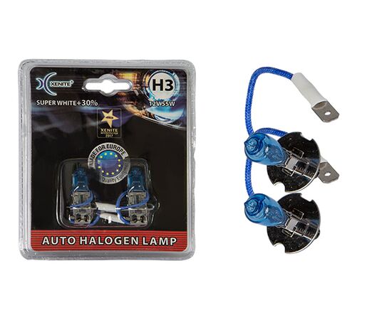 Лампа галогеновая головного света H3 PK22s 4000K Super White +30% 12V 55W Блистер 2шт