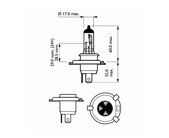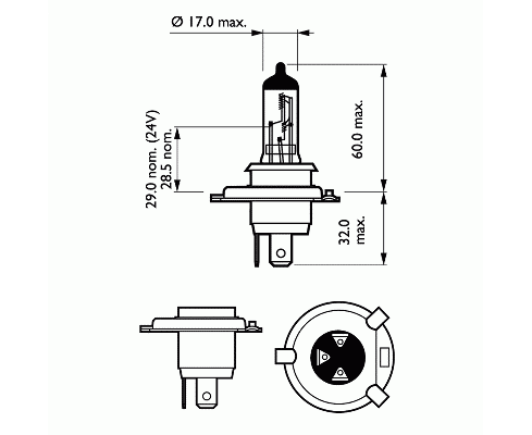 Лампа галогеновая головного света H4 P43t 3200K Vision 12V 60/55W Картон 1 шт