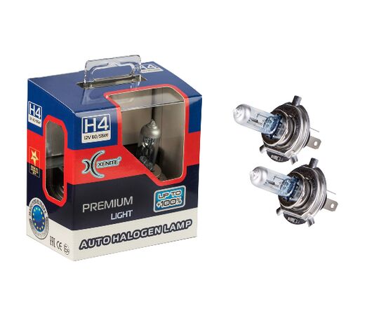 Лампа галогеновая головного света H4 P43t 3600K PREMIUM Яркость+100% 12V 60/65W Блистер 2шт