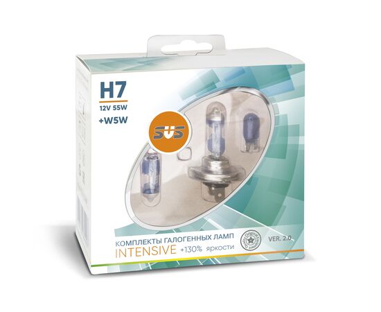 Лампа галогеновая H7 PX26d 12V 55W 3400-3800K Intensive +130% Ver.2.0 + W5W White 2+2шт