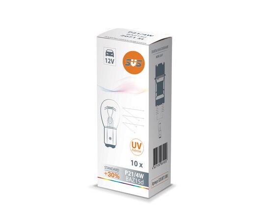Лампа накаливания сигнальная P21/4W BAZ15d 3200K Standart +30% 12V 21/4W картон 10шт цена за 1шт