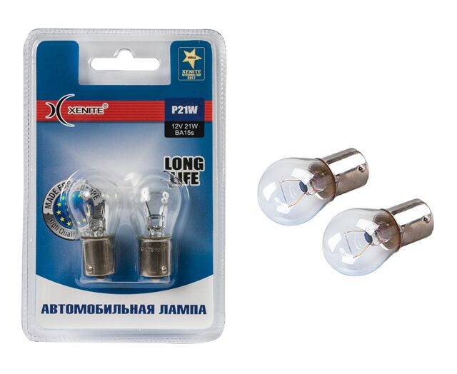 Лампа накаливания сигнальная P21W BA15s 3200K Long Life 12V 21W Блистер 2шт