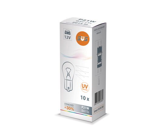Лампа накаливания сигнальная P21W BA15s 3200K Standart +30% 12V 21W картон 10шт цена за 1шт