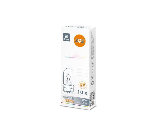 Лампа накаливания сигнальная W5W W2.1x9.5d 3200K Standart +30% 24V 5W картон 10шт цена за 1шт