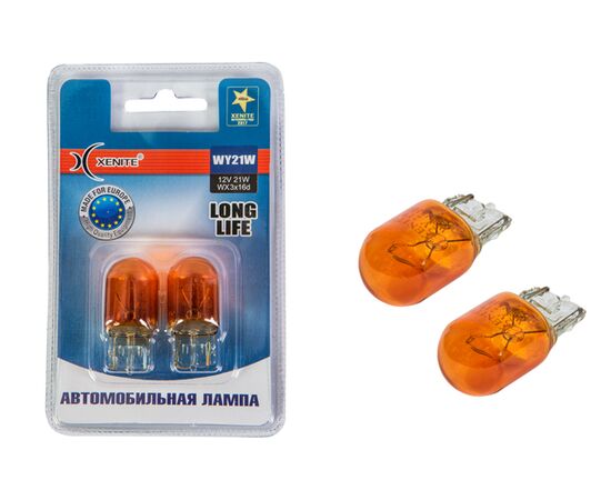 Лампа накаливания сигнальная WY21W жёлтая W3x16q 3200K Long Life 12V 21W Блистер 2шт