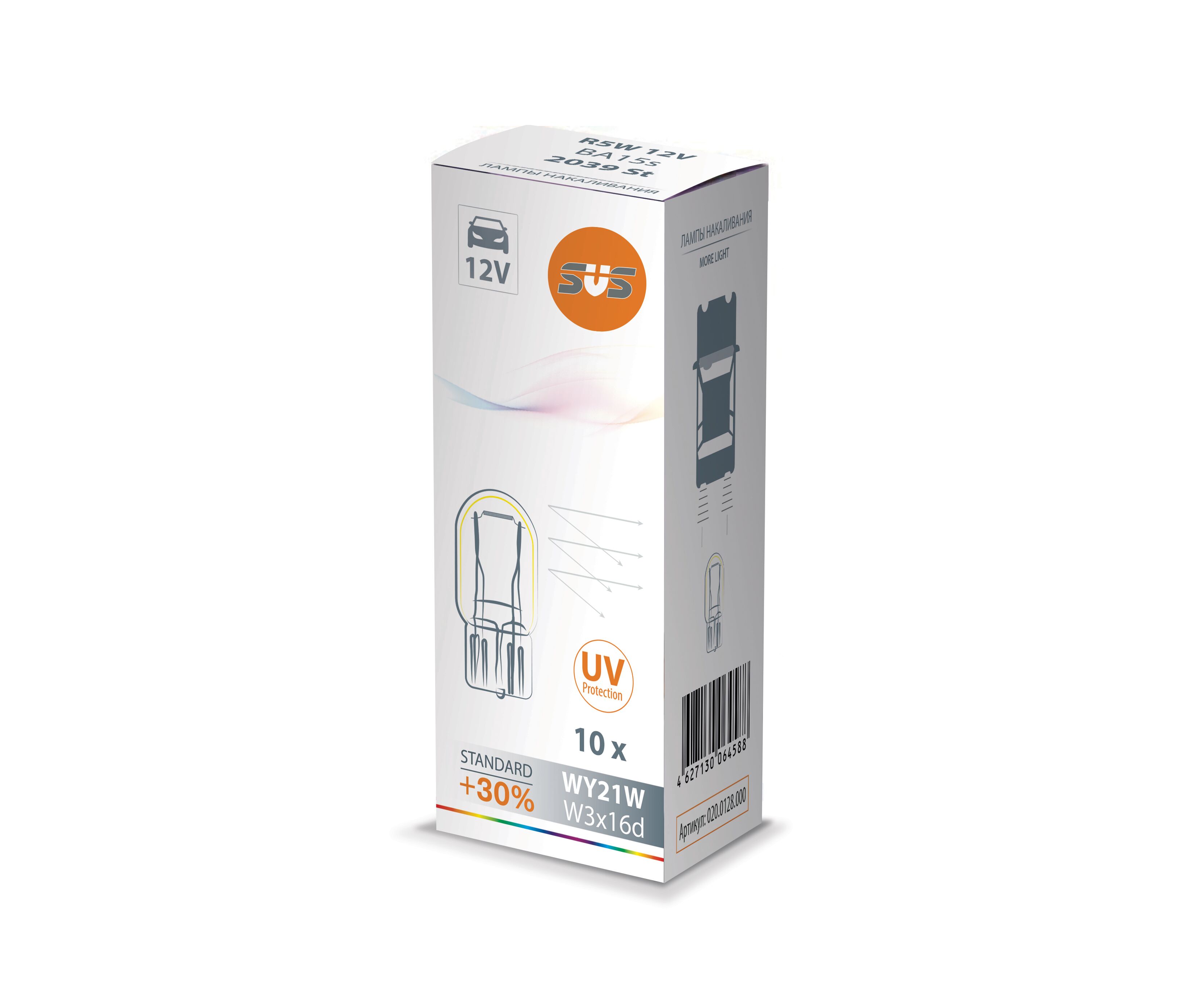 Лампа накаливания сигнальная WY21W W3x16q 3200K Standard +30% 12V 21W Картон 10шт цена за 1шт