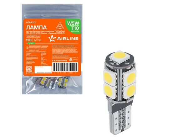 Лампа сигнальная светодиодная, обманка CANBUS, 1 шт. W5W 5W 12V W2.1x9.5d 6000K AEAR312
