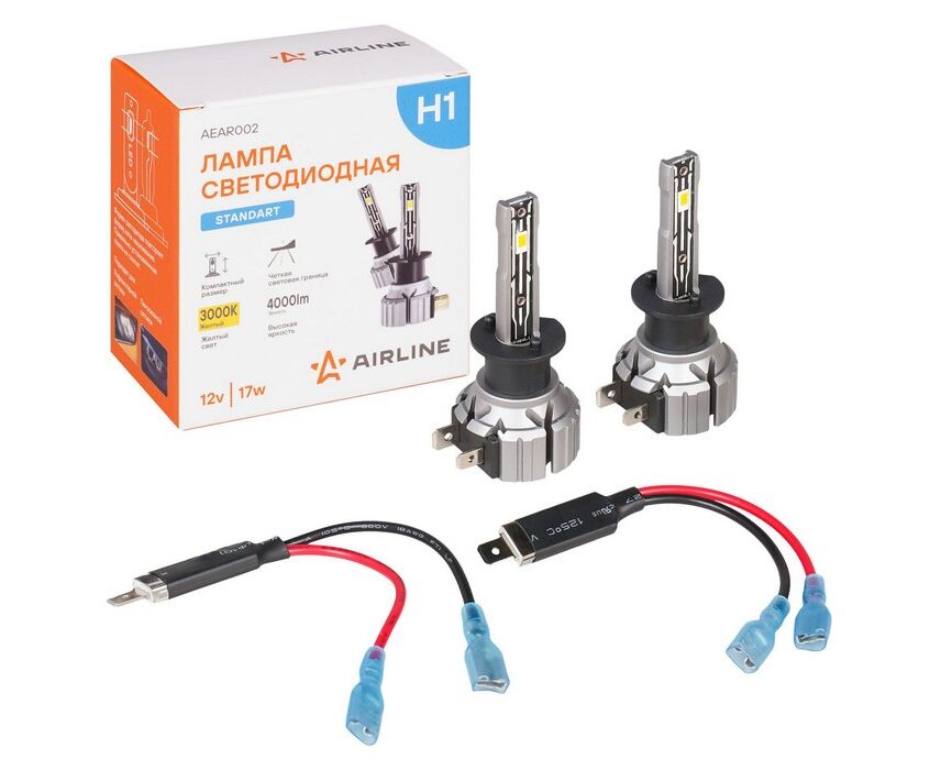 Лампa светодиод. H1, 12В, 17Вт, 3000К (Желтый), 4000Лм, для рефлект./линз. оптики, 2 шт., STANDART (