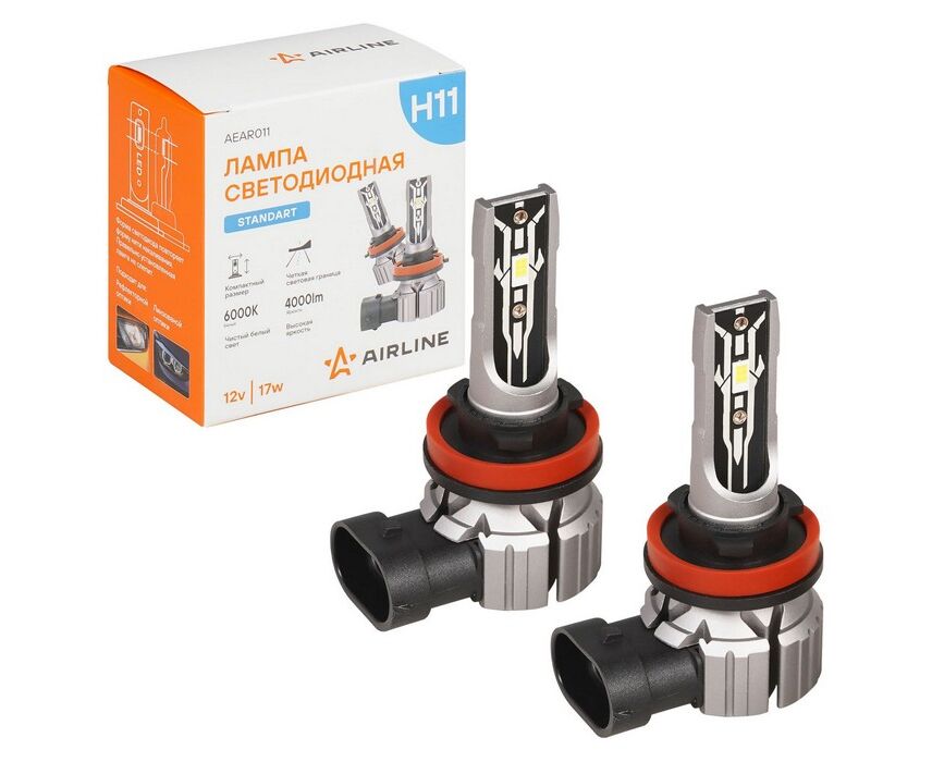 Лампa светодиодная H11 12В 17Вт 6000К Белая 4000Лм для рефлект./линз. кмпл. STANDART 2шт