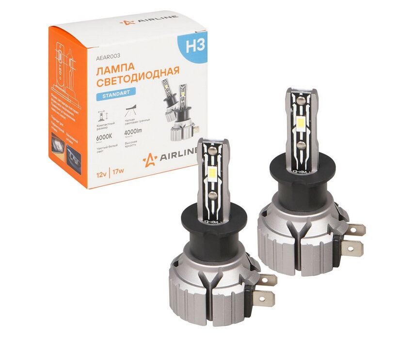 Лампa светодиодная H3 12В 17Вт 6000К Белая 4000Лм для рефлект./линз. кмпл. STANDART 2шт