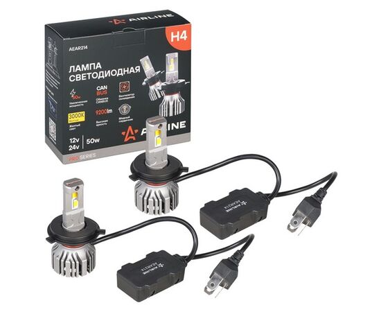 Лампa светодиод. H4, 12/24В, 50Вт, 3000К (Желтый), 9200Лм, для линз. оптики, 2 шт., PRO (AEAR214)