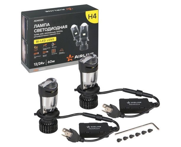 Лампа светодиод. H4, 12/24В, 60Вт, 6500К (Белый), 7000Лм, для рефлект. оптики, 2 шт., BI-LED LENS (A