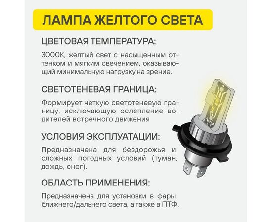 Лампa светодиод. H4, 12В, 17Вт, 3000К (Желтый), 4000Лм, для рефлект./линз. оптики, 2 шт., STANDART (