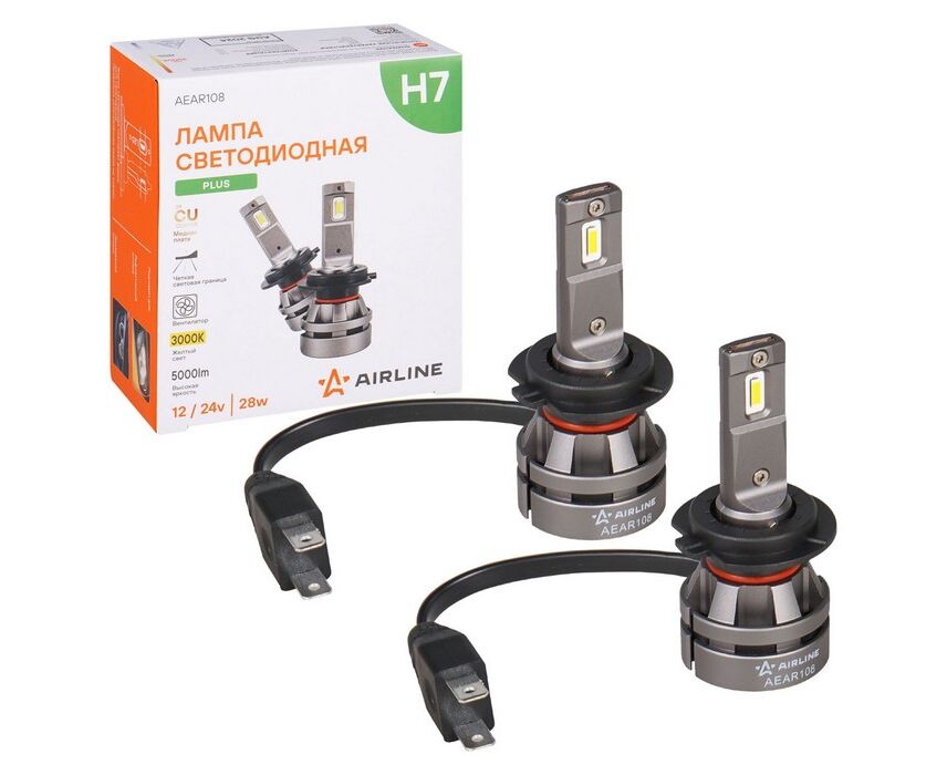 Лампa светодиод. H7, 12/24В, 28Вт, 3000К (Желтый), 5000Лм, для рефлект./линз. оптики, 2 шт., PLUS (A