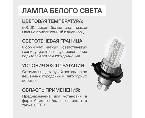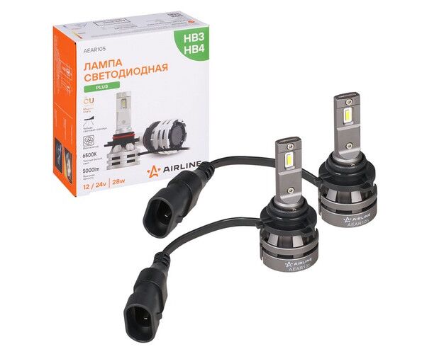 Лампa светодиод. HB3/HB4, 12/24В, 28Вт, 6500К (Белый), 5000Лм, для рефлект./линз. оптики, 2 шт., PLU
