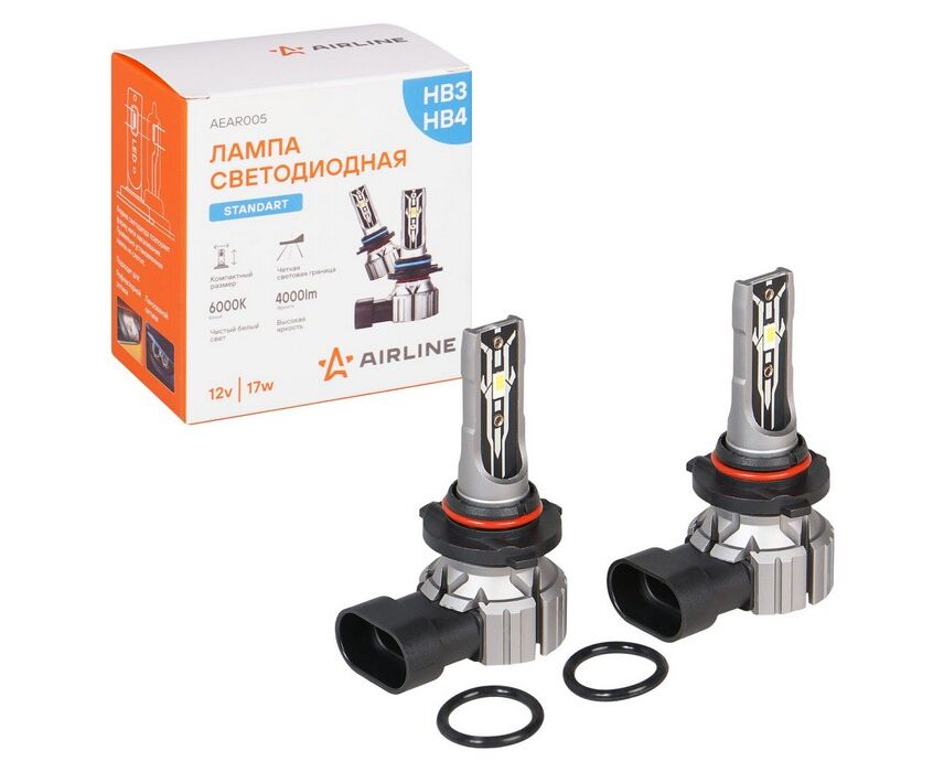 Лампa светодиод. HB3/HB4, 12В, 17Вт, 6000К (Белый), 4000Лм, для рефлект./линз. оптики, 2 шт., STANDA