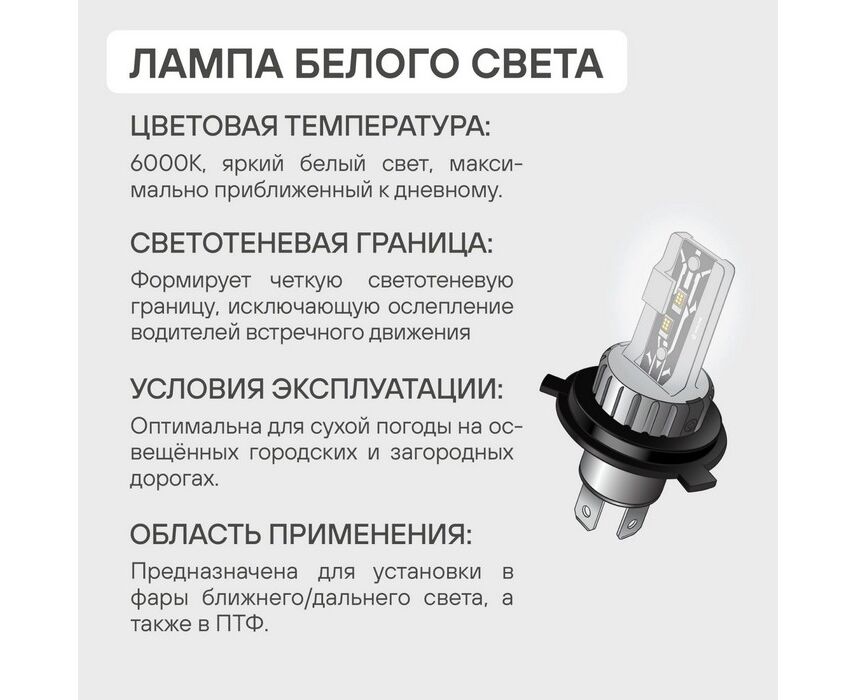Лампa светодиод. HB3/HB4, 12В, 17Вт, 6000К (Белый), 4000Лм, для рефлект./линз. оптики, 2 шт., STANDA