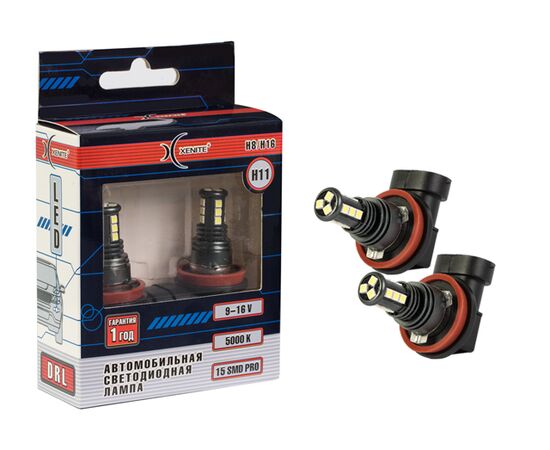 Лампа светодиодная головного света H8/H11/H16 PGJ19-1/PGJ19-2/PGJ19-3 5000К 15SMD PRO блистер 2шт