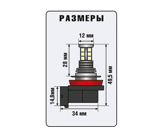 Лампа светодиодная H11/H8/H9/H16 LED-X2 25W (Яркость 3400Lm) 5000K 12V (комплект 2шт)
