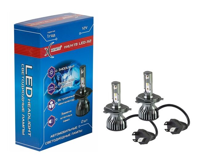 Лампа светодиодная H4/H19 LED-X2 25W (Яркость 3400Lm) 5000K 12V (комплект 2шт)