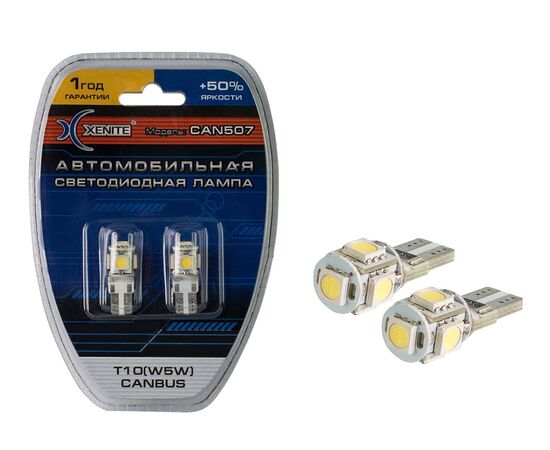 Лампа светодиодная сигнальная Т10 W5W с обманкой W2,1*9,5d 5000K Яркость +50% 12V 1W блистер 2шт