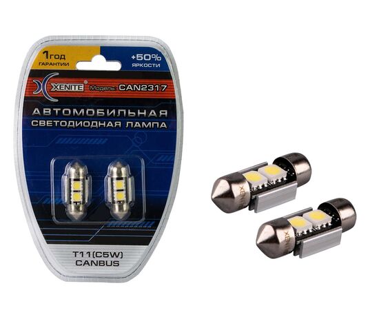 Лампа светодиодная сигнальная Т11C5W SV8,5*31 мм 5000K Can 2317 +50% 12V 0,4W Блистер 2шт