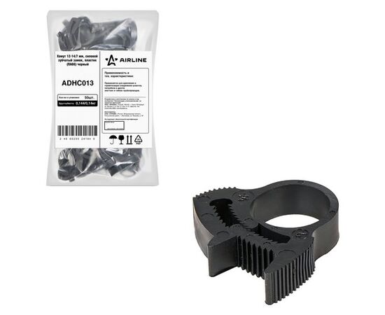 Хомут 12-14/7 мм, силовой зубчатый замок, пластик (ПА66) черный