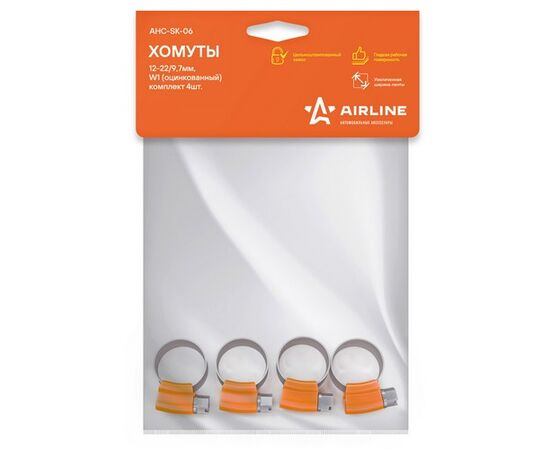 Хомуты 12-22/9,7 мм, червячные, усиленные, W1 (оцинк.), комплект 4 шт. (AHC-SK-06)