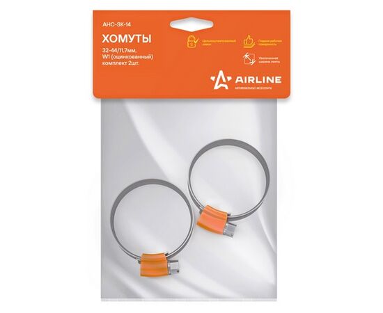 Хомуты 32-44/11,7 мм, червячные, усиленные, W1 (оцинк.), комплект 2 шт. (AHC-SK-14)
