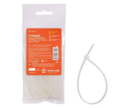 Стяжки (хомуты) кабельные 2,5*100 мм, пластиковые, белые, 100 шт. (ACT-N-02)