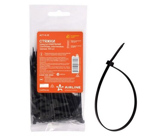 Стяжки (хомуты) кабельные 2,5*100 мм, пластиковые, черные, 100 шт. (ACT-N-18)
