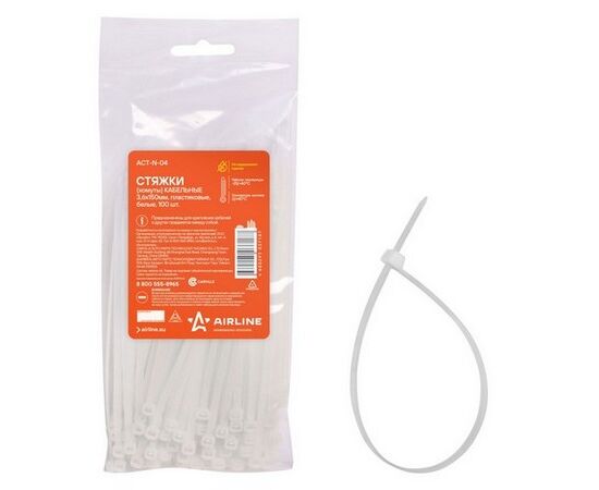 Стяжки (хомуты) кабельные 3,6*150 мм, пластиковые, белые, 100 шт. (ACT-N-04)