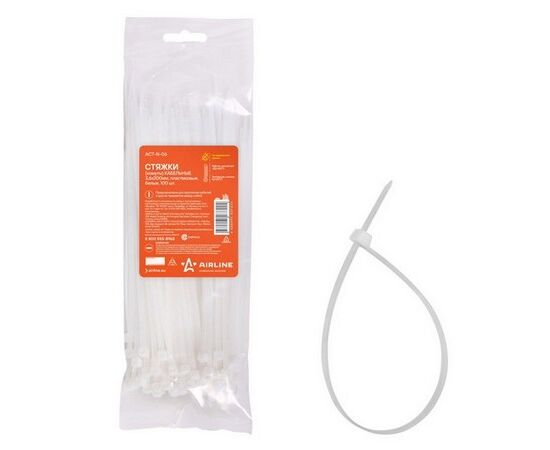 Стяжки (хомуты) кабельные 3,6*200 мм, пластиковые, белые, 100 шт. (ACT-N-06)