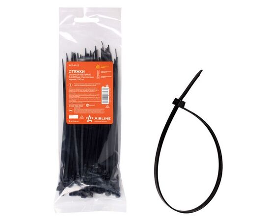 Стяжки (хомуты) кабельные 3,6*200 мм, пластиковые, черные, 100 шт. (ACT-N-22)